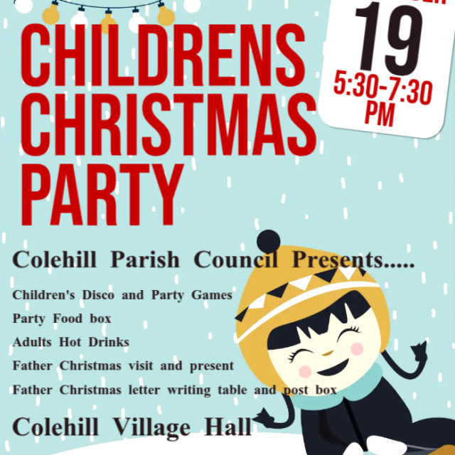 Once again, Colehill Parish Council are hosting a traditional Christmas party in the Village Hall on 19th...